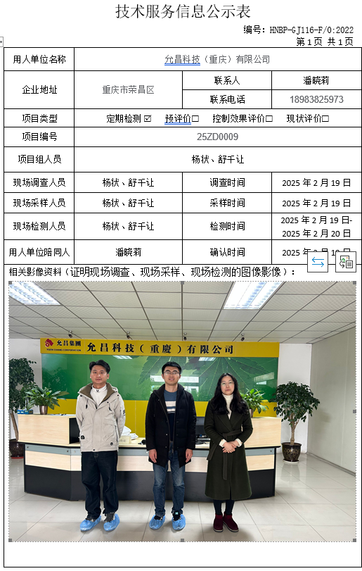 重庆卡东云技彩印包装有限公司定期检测项目...