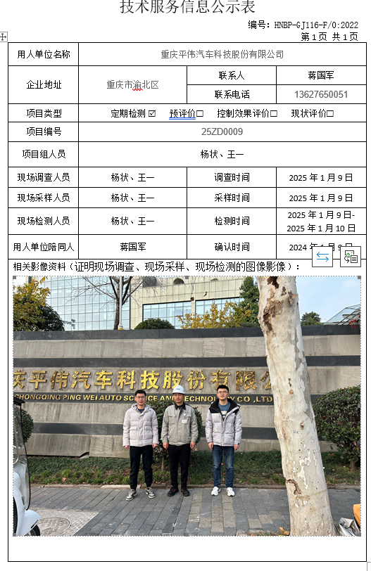 职业卫生检测项目公示