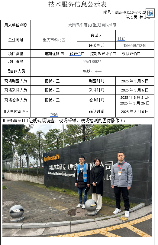 职业卫生检测项目公示