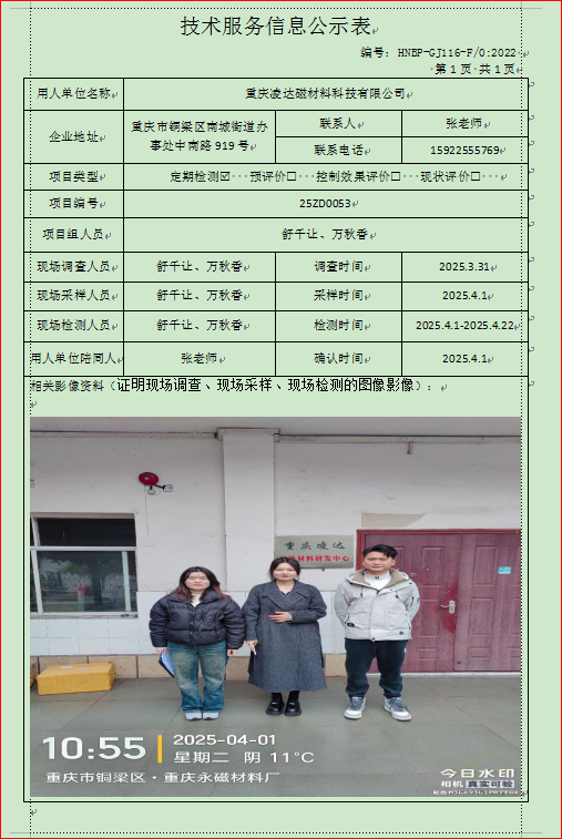 重庆凌达磁材料科技有限公司定期检测项目公示