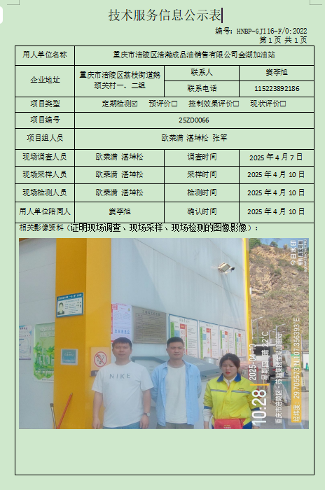 重庆市涪陵区浩瀚成品油销售有限公司金湖加油站定期检测项目公示