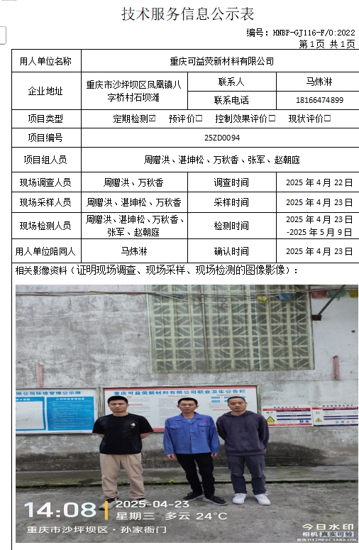 重庆鼎泰塑胶有限公司定期检测项目公示...