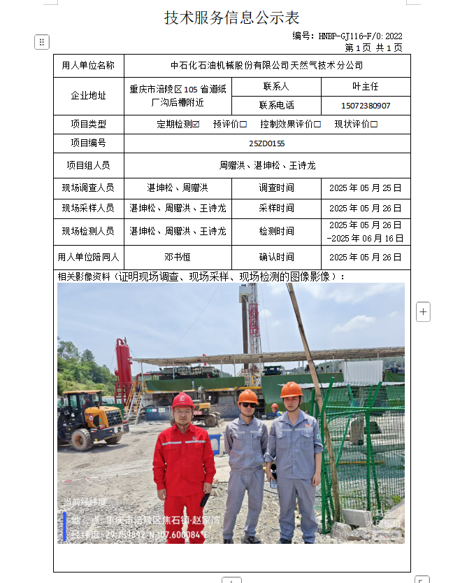 中石化石油机械股份有限公司天然气技术服务分公司定期检测项目公示