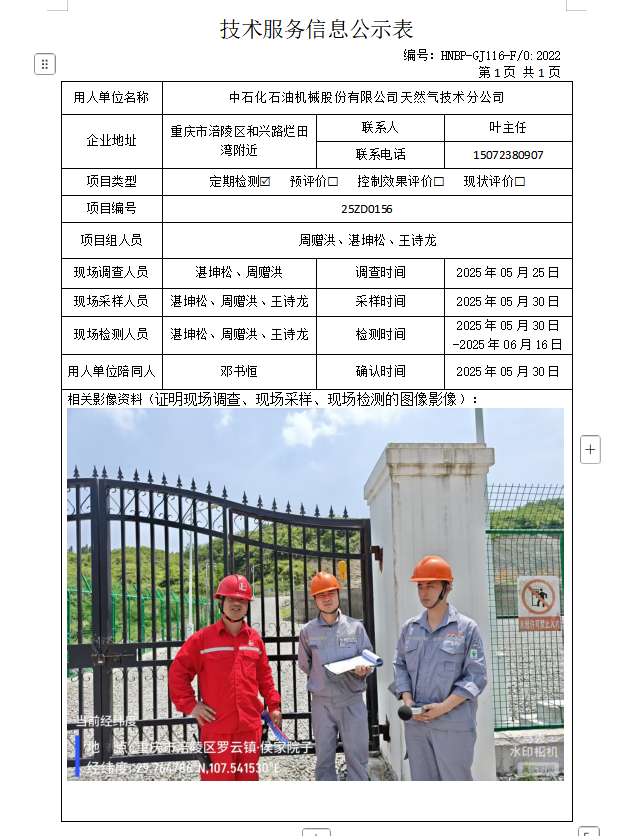 中石化石油机械股份有限公司天然气技术服务分公司定期检测项目公示