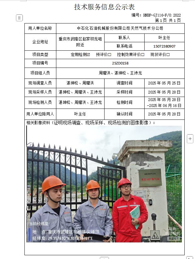 中石化石油机械股份有限公司天然气技术服务分公司定期检测项目公示