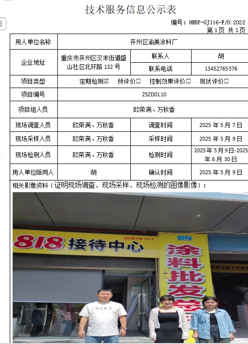 重庆中伟欣诚科技有限公司定期检测项目公示...