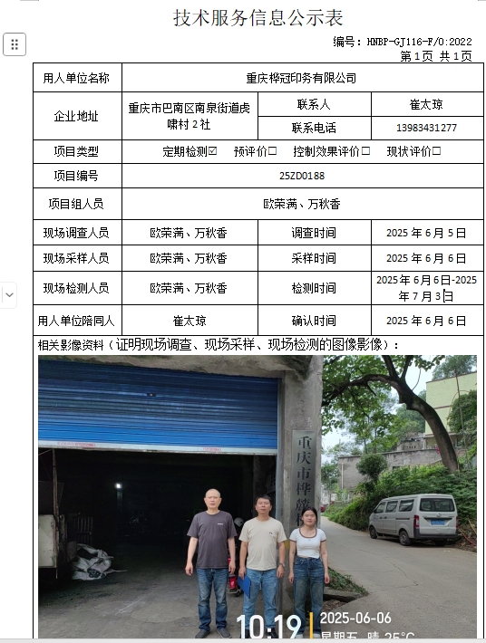 重庆中伟欣诚科技有限公司定期检测项目公示...