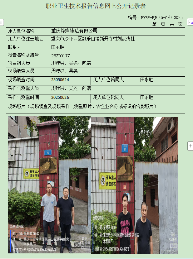 重庆烨烽铸造有限公司定期检测项目公示